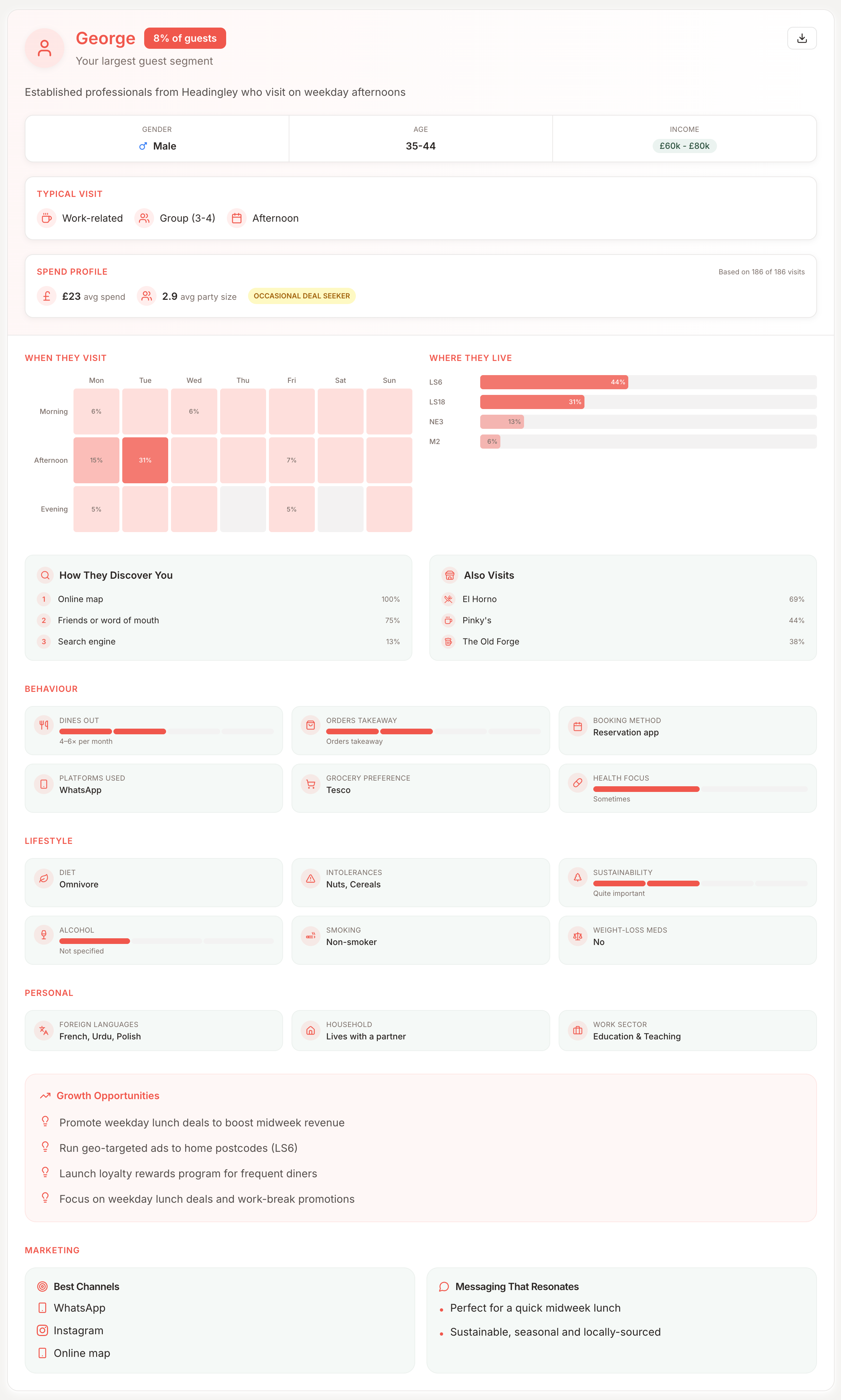 Understand your guests in depth, from visit reasons and party sizes to age, location and habits.